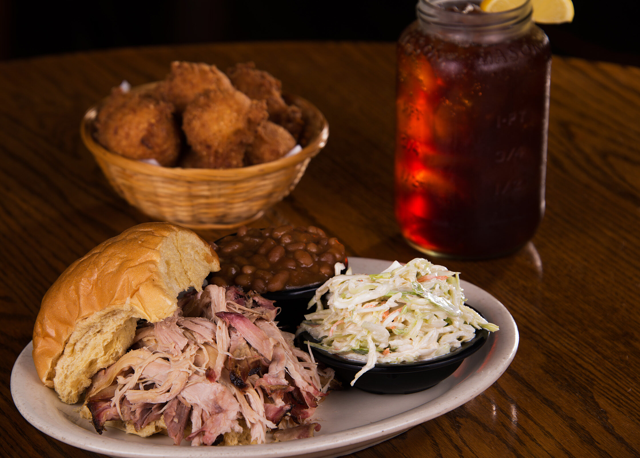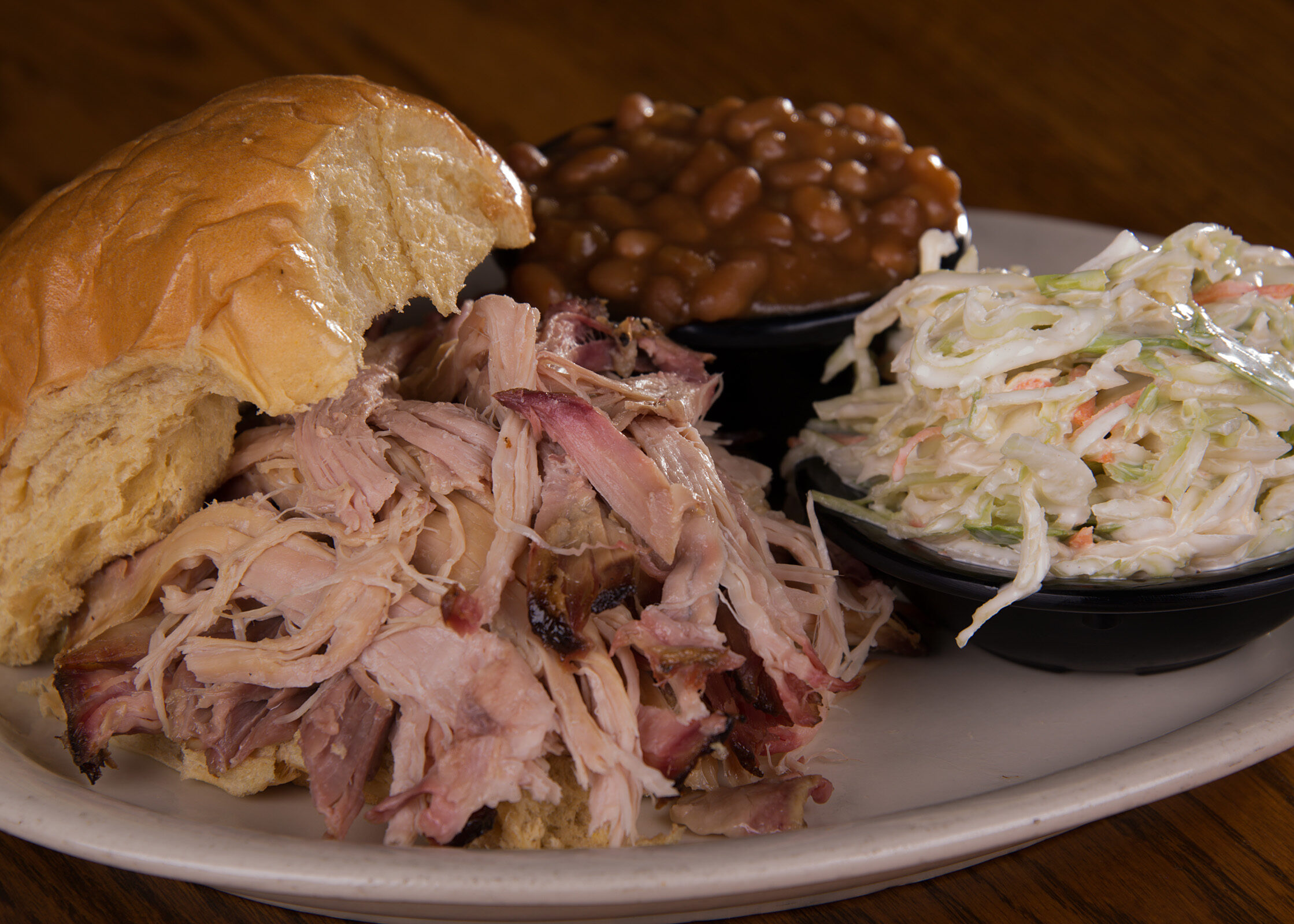 Smoke from our real wood barbecue pit causes our smoked meats to have a slight pink coloration
